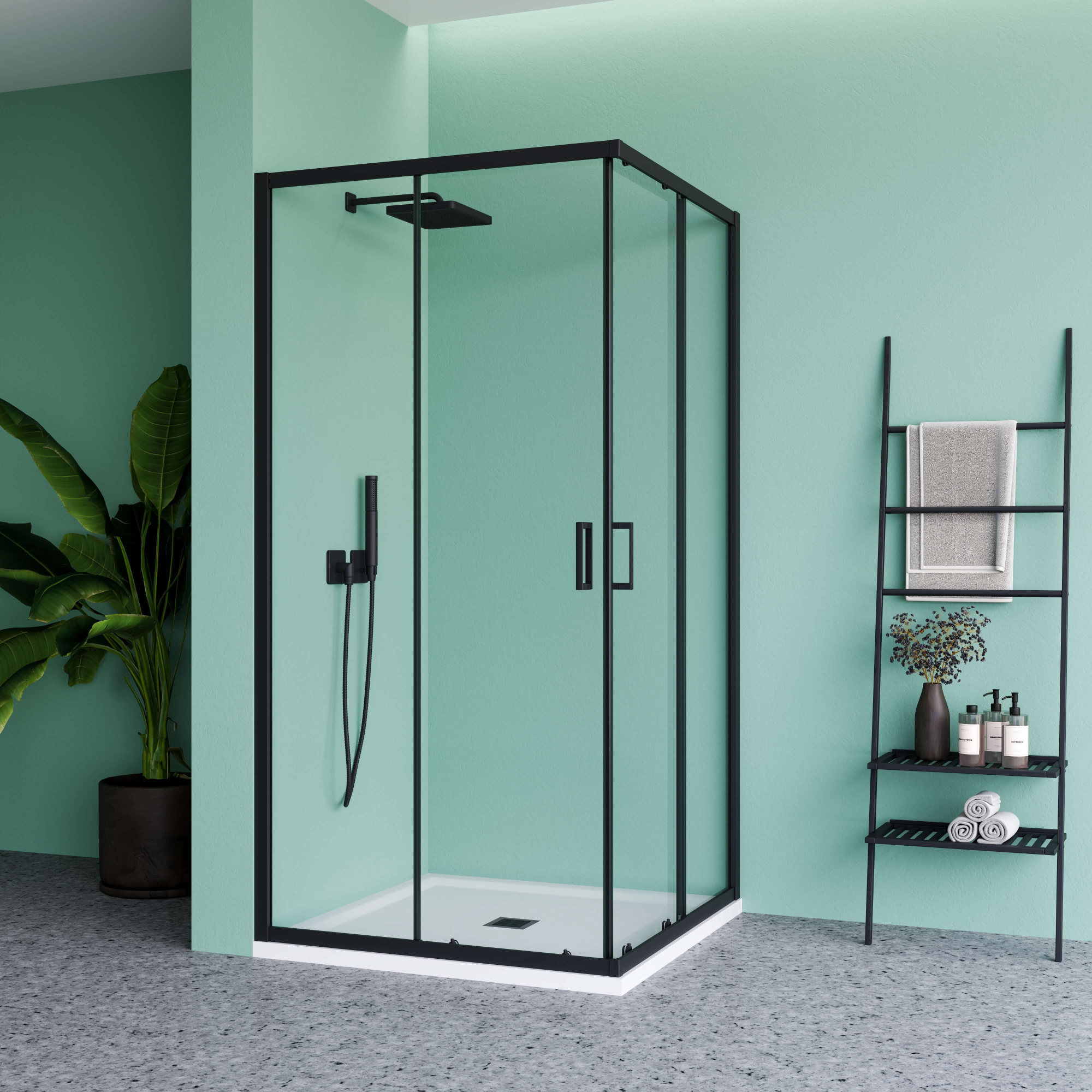 Душевой уголок 100х100 см черный профиль прозрачное стекло 6 мм