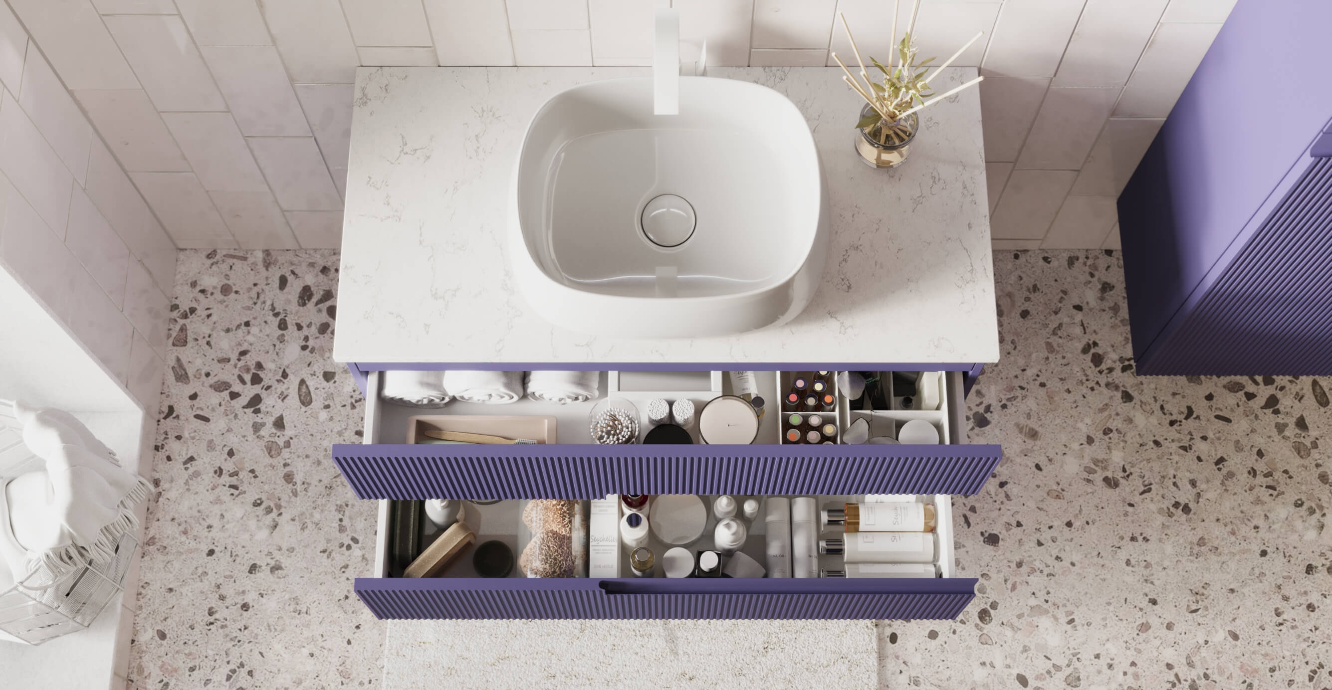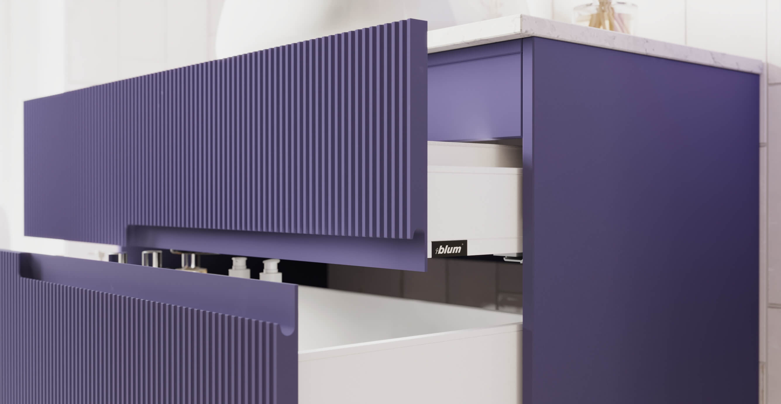 Долговечность и надёжность. Тумба оснащена фурнитурой австрийского бренда Blum, которая обеспечивает плавное открывание и закрывание ящиков. Ящики оснащены направляющими Blumotion с синхронизатором открывания, что обеспечивает плавность хода и долговечность.